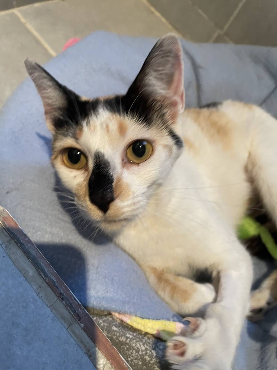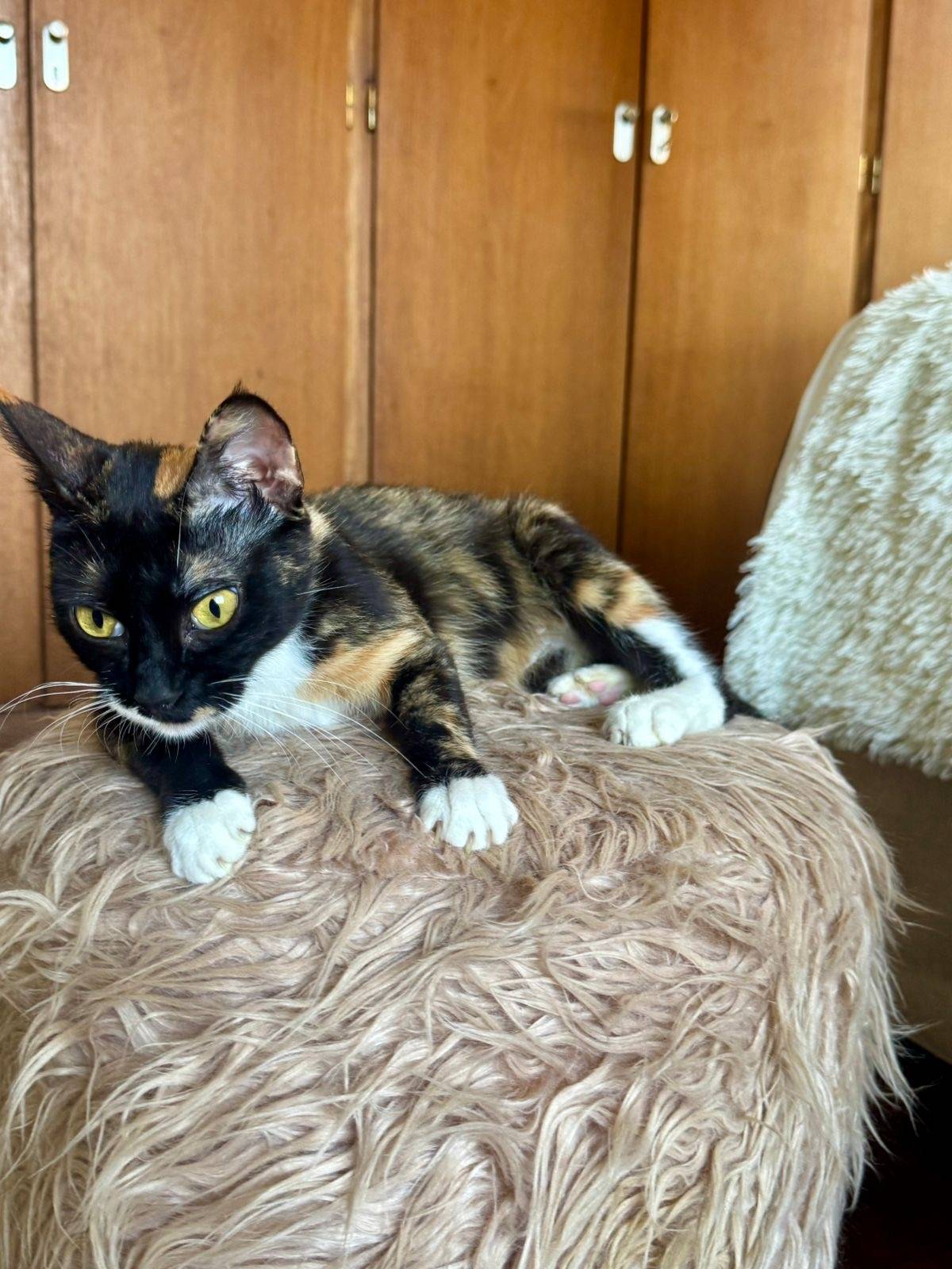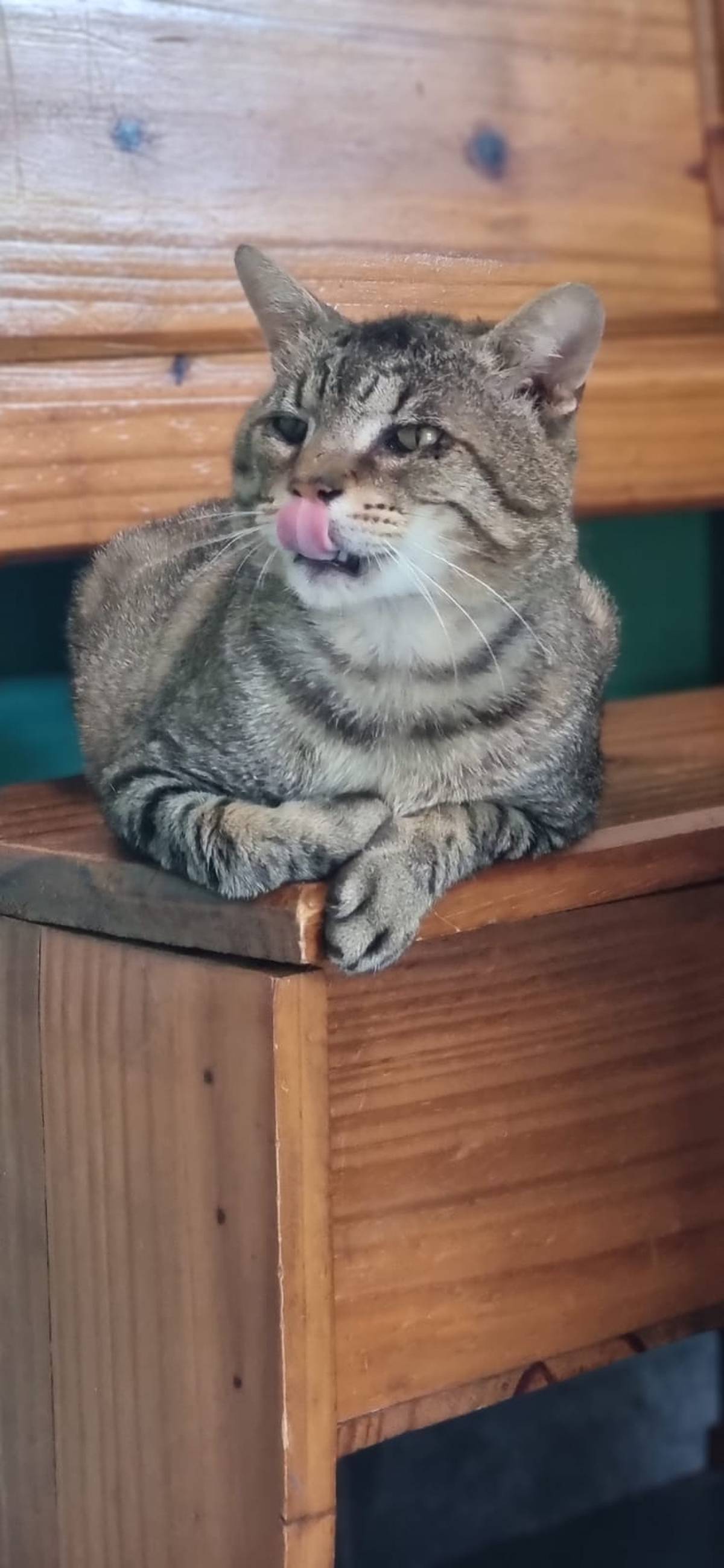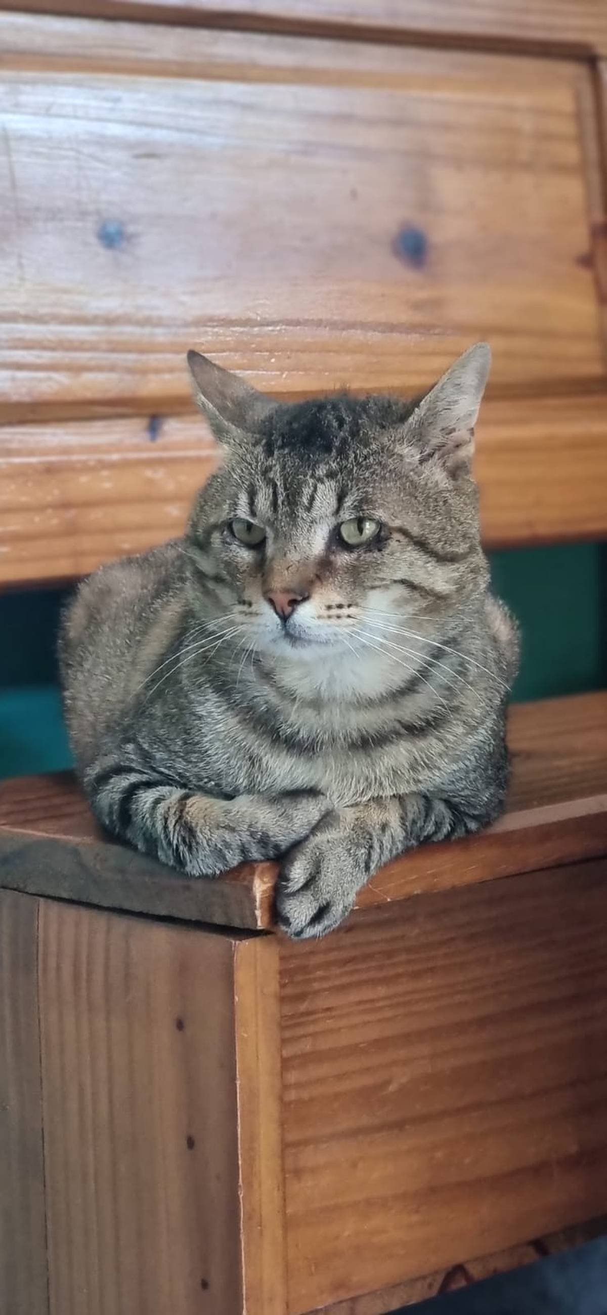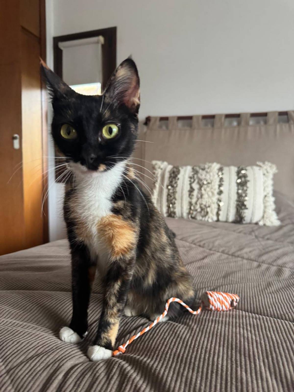 Hoy tiene 1 año aprox. Esta castrada y vacunada. Es un amor que se pone a ronronear y maullar para llamar la atención. Puede ir con otros gatos aunque a veces es media cabrona al principio 🥰