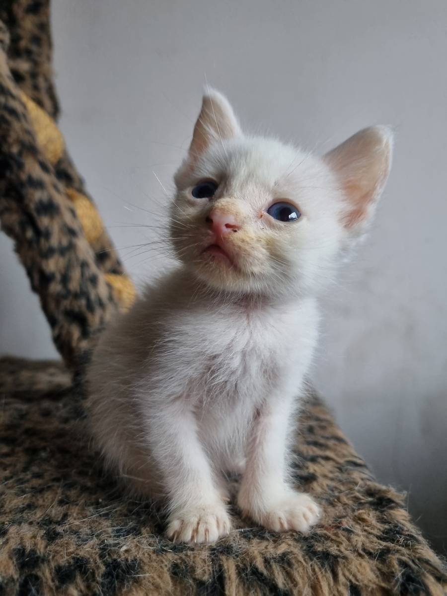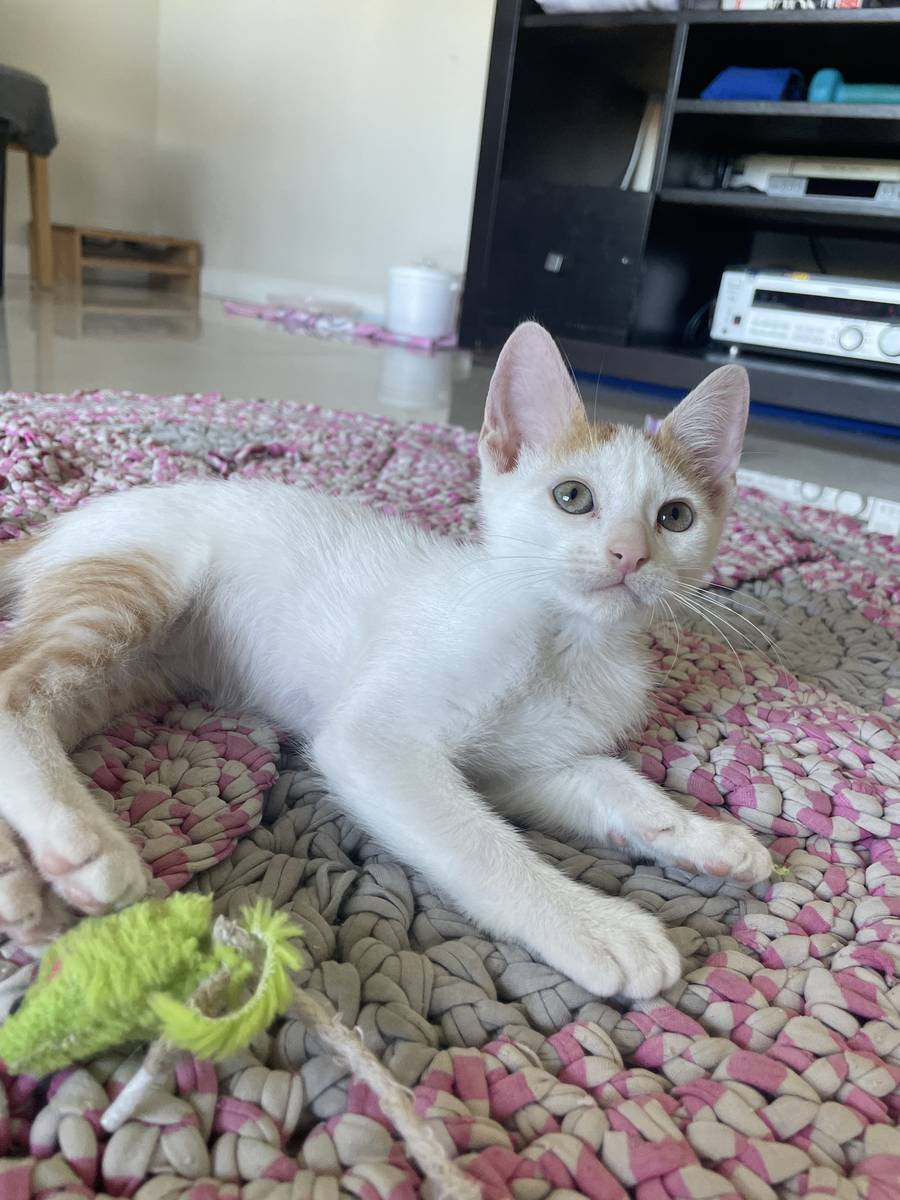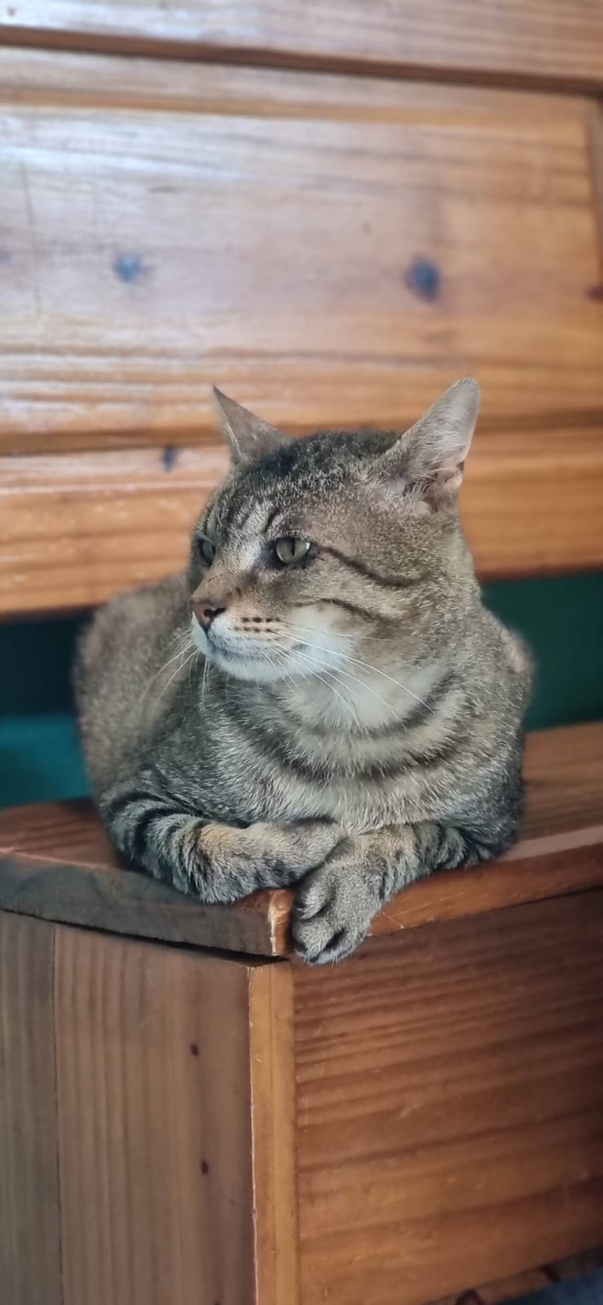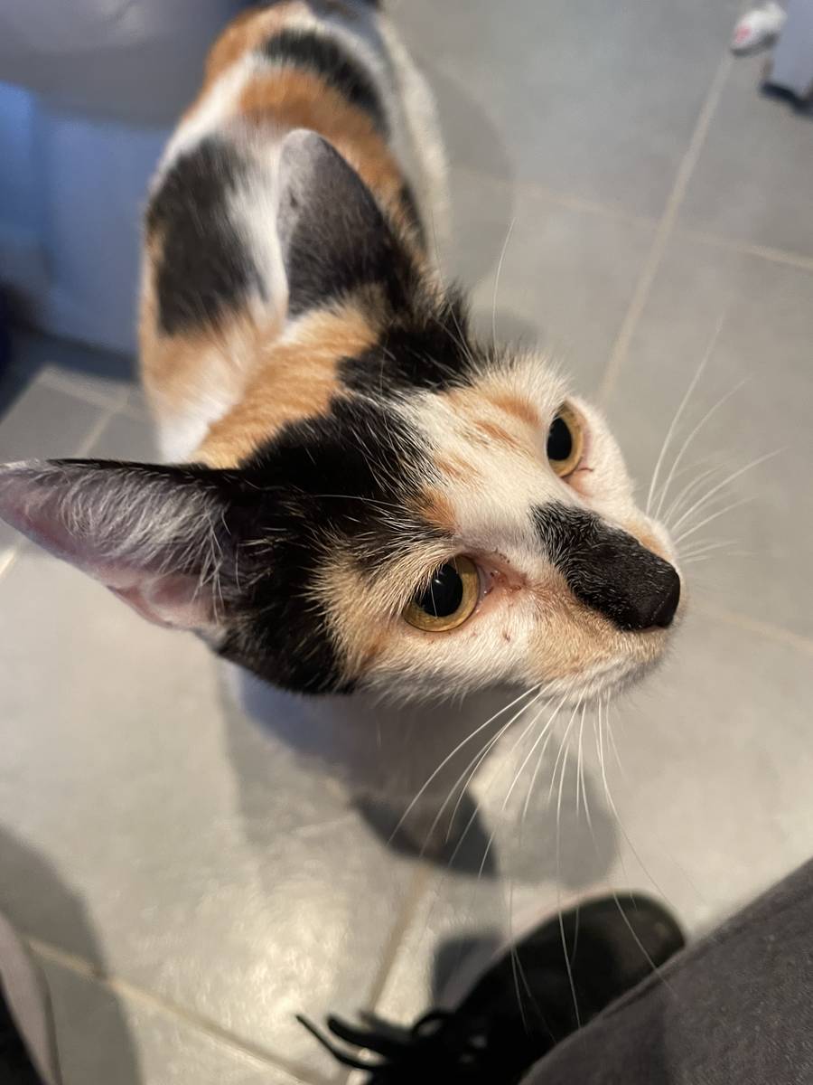 Hoy tiene 1 año aprox. Esta castrada y vacunada. Es un amor que se pone a ronronear y maullar para llamar la atención. Puede ir con otros gatos aunque a veces es media cabrona al principio 🥰
