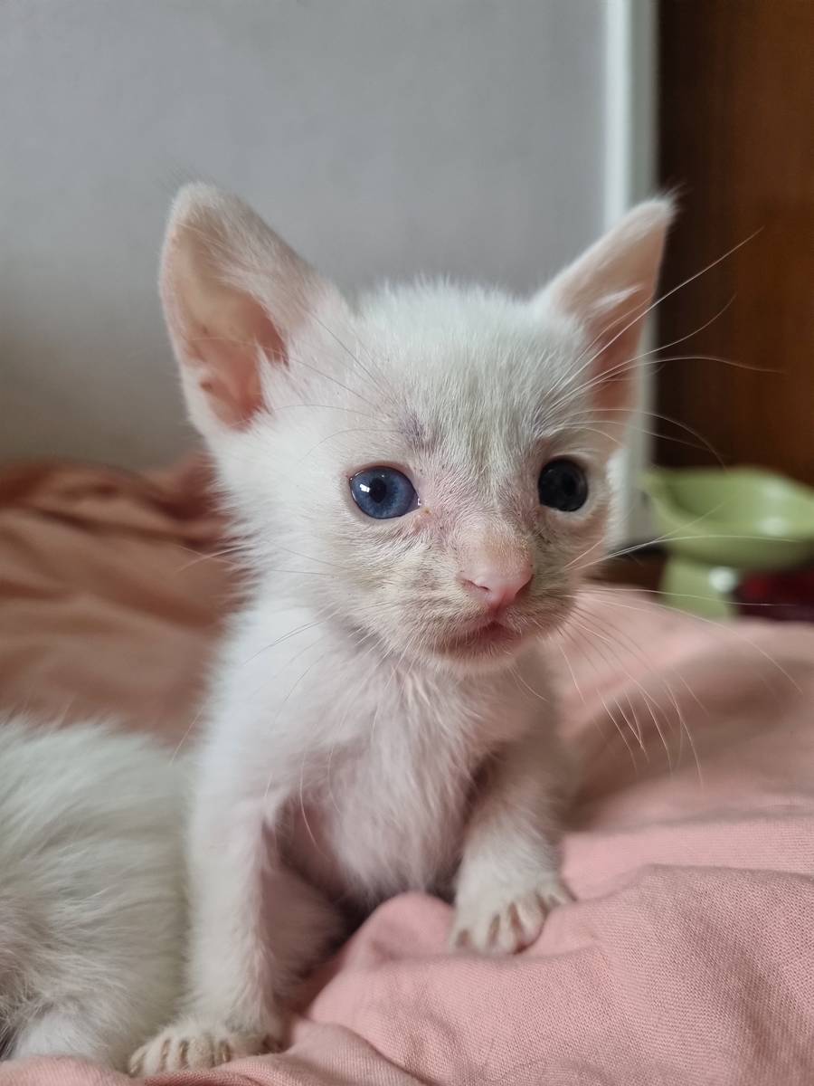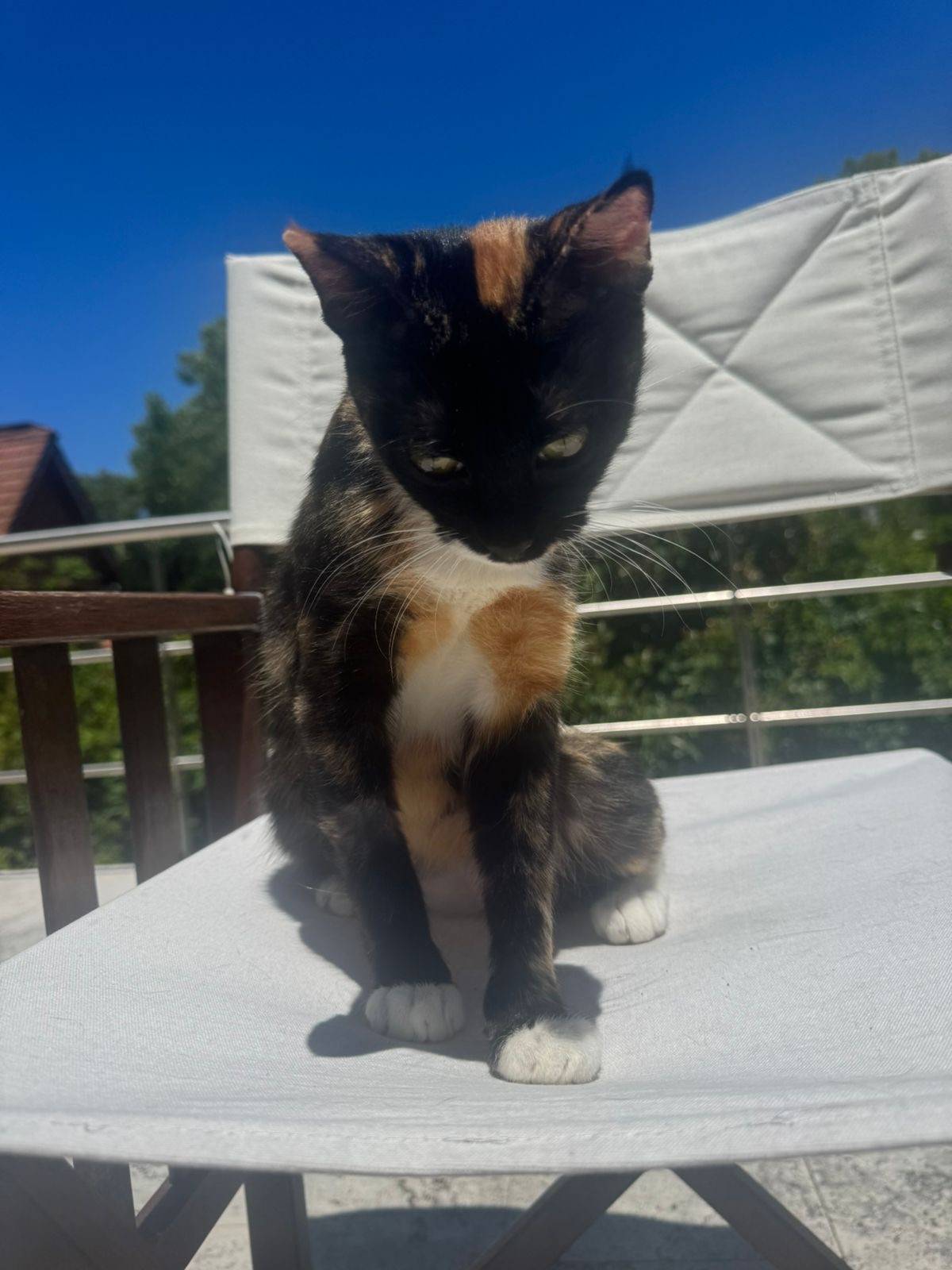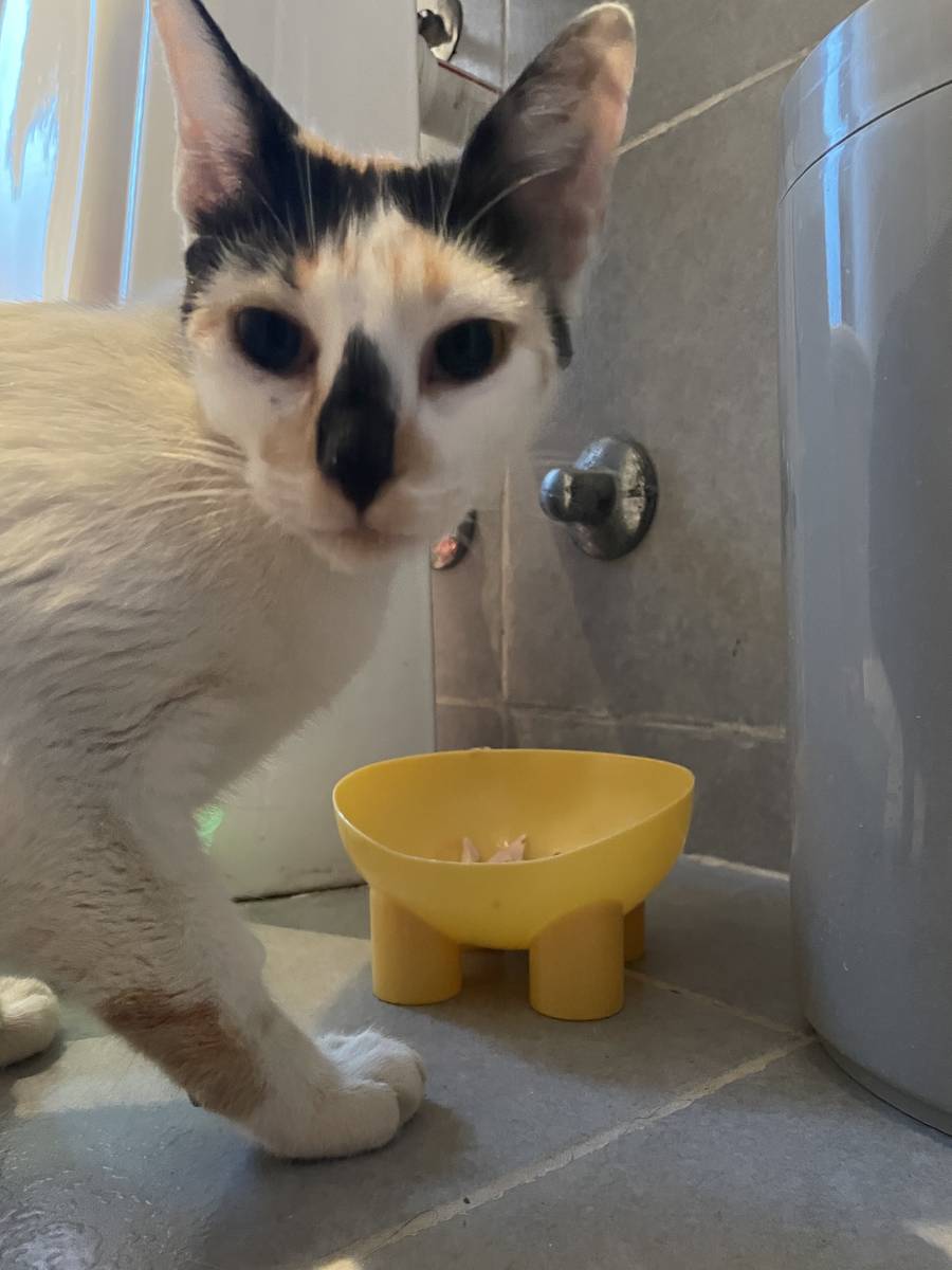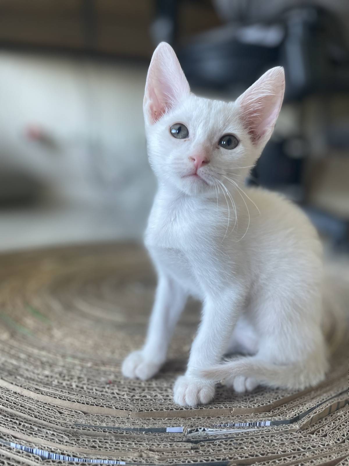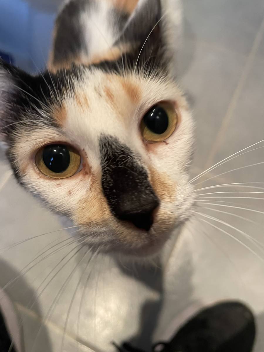 Hoy tiene 1 año aprox. Esta castrada y vacunada. Es un amor que se pone a ronronear y maullar para llamar la atención. Puede ir con otros gatos aunque a veces es media cabrona al principio 🥰
