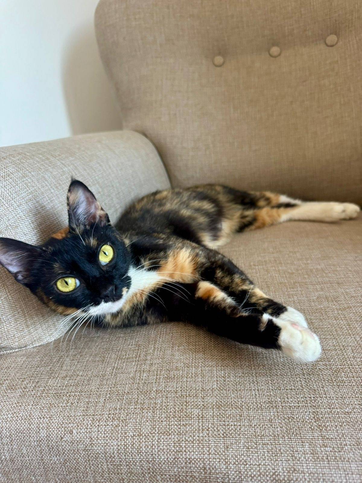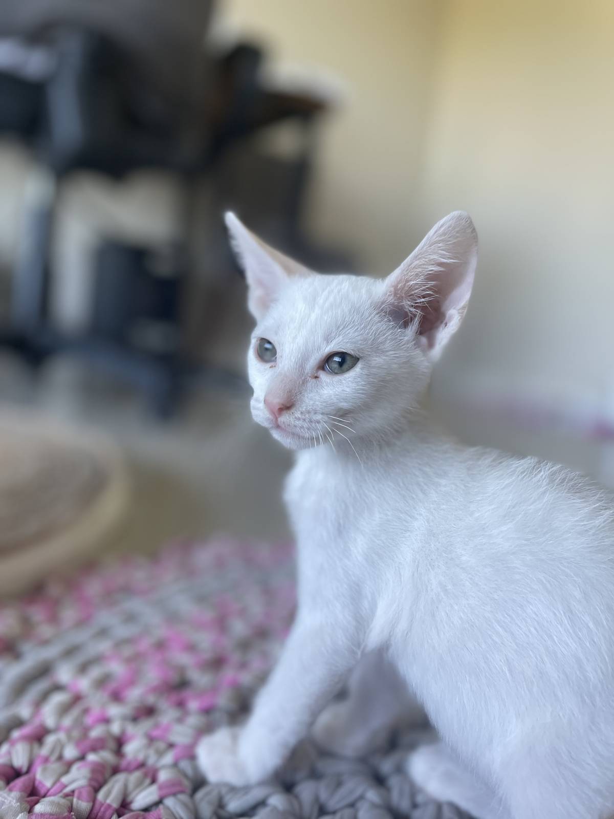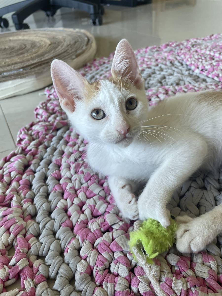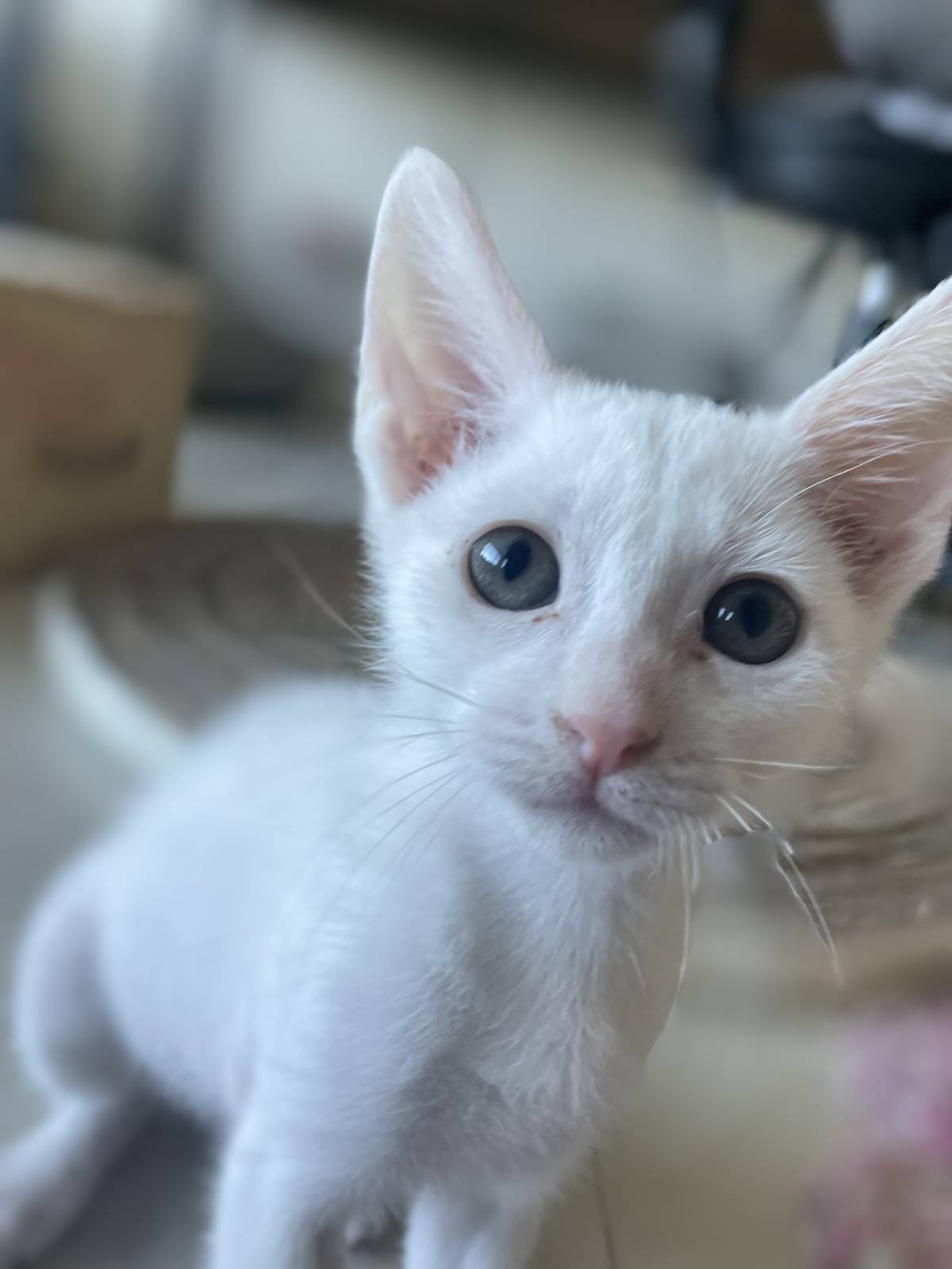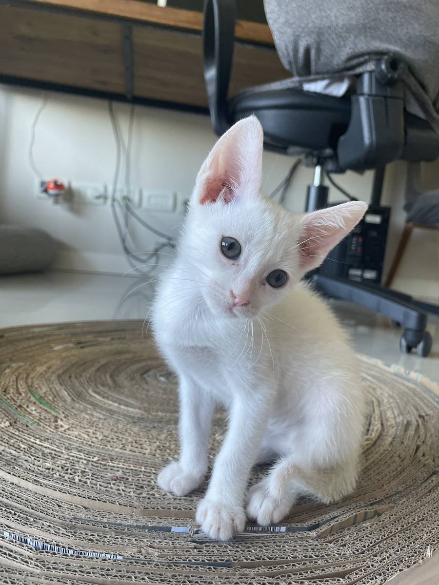 Hoy tiene 1 año aprox. Esta castrada y vacunada. Es un amor que se pone a ronronear y maullar para llamar la atención. Puede ir con otros gatos aunque a veces es media cabrona al principio 🥰