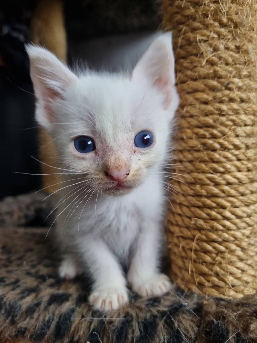 Alma es una gata muy especial, blanca con manchas negras, tiene un ojo de cada color, es muy territorial, me gustaria encontrar un lugar especial con algo de naturaleza para que ella pueda disfrutar de un arbol, pasto, etc y no tener que vivir encerrada en un departamento, es decir, que pueda hacer la vida de un gato.