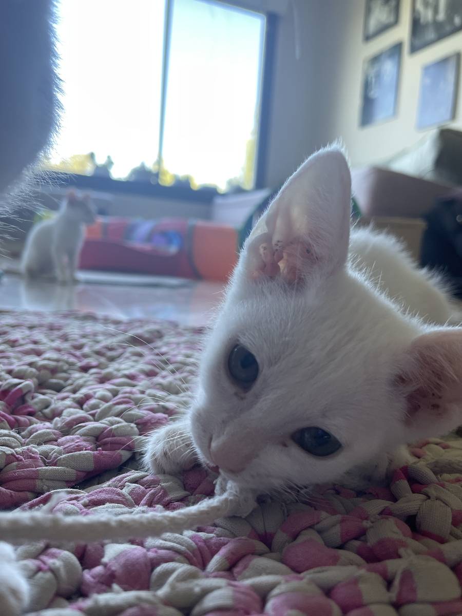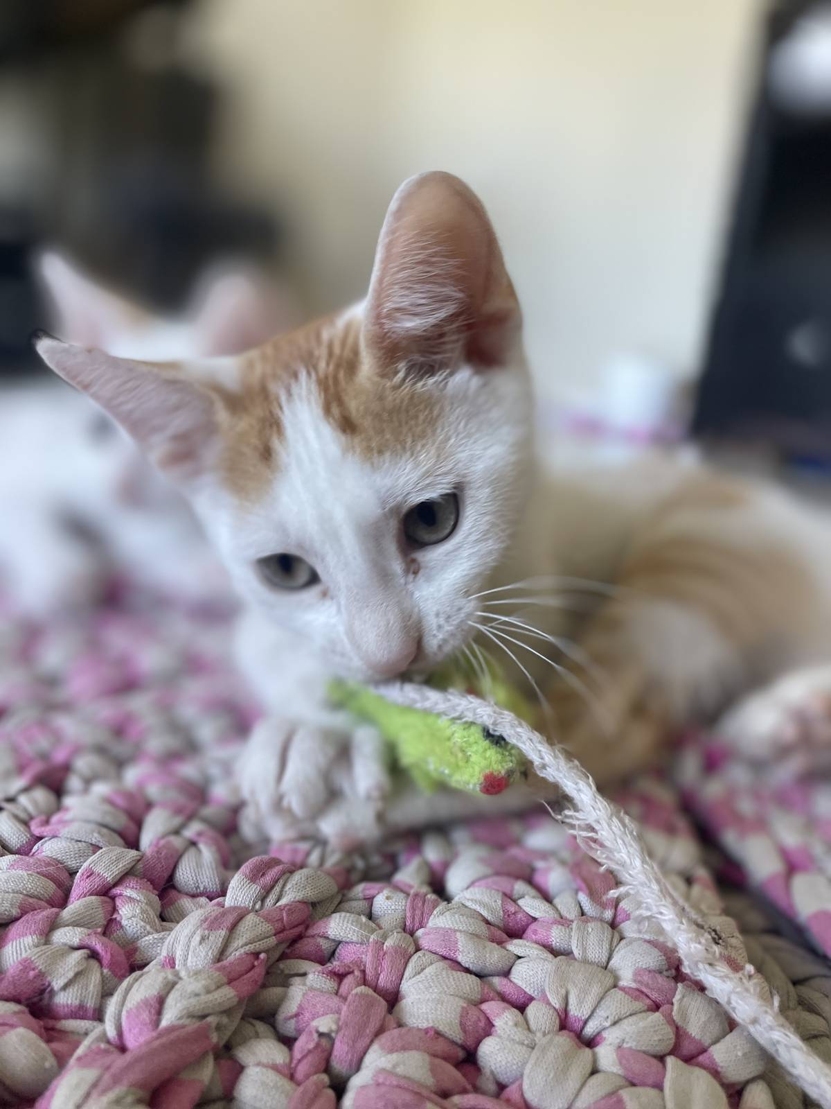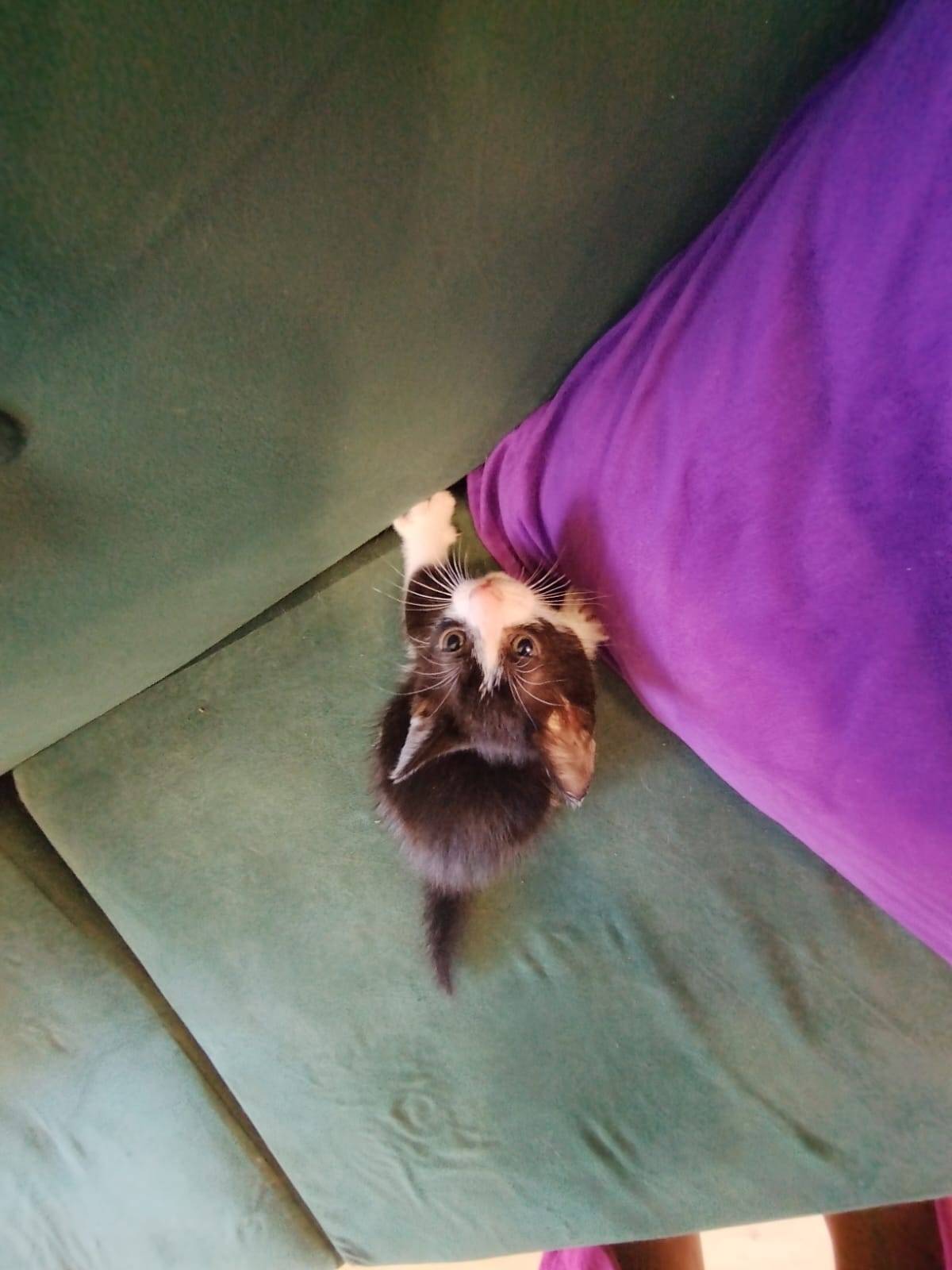 A rufi me lo encontré hace cosa de 1 semana en la calle cruzando corriendo y desesperado porque lo corrían unos perros💔 Lo frené, me dejó acariciarlo y me lo tuve que traer a casa. Es demasiado amigable, ronronero y mimoso!!!! Es sin dudas el mejor compañero, juega y duerme, juega con vos y duerme con vos jaja. Es puuuro ojo😍❤️! Come de todo! Ama las verduras, el pollo y el alimento. Se entrega desarasitado y despulgado. Tendrá entre 5 y 6 meses según el veterinario. Si te interesa adoptar a RUFI escribime al privado @lo.velazquezz