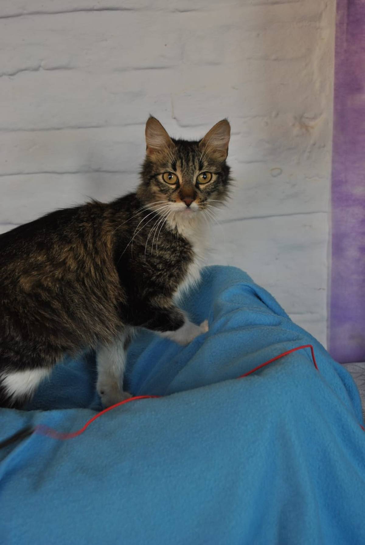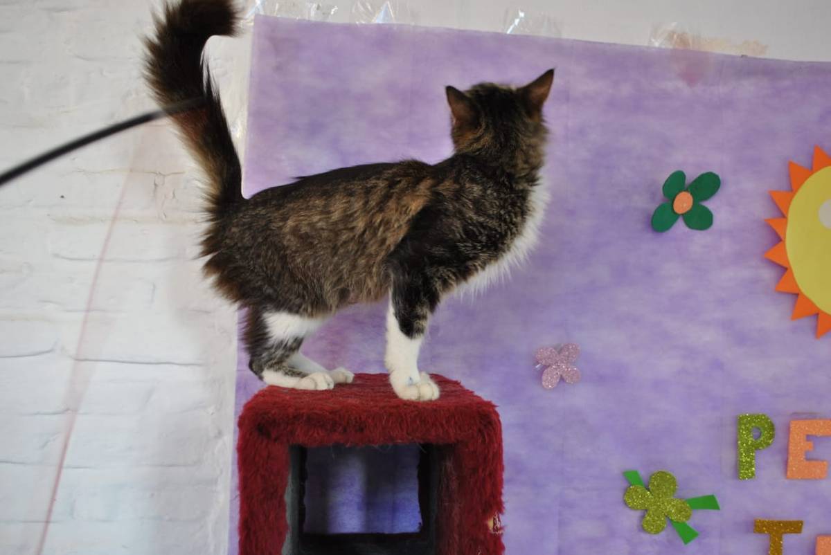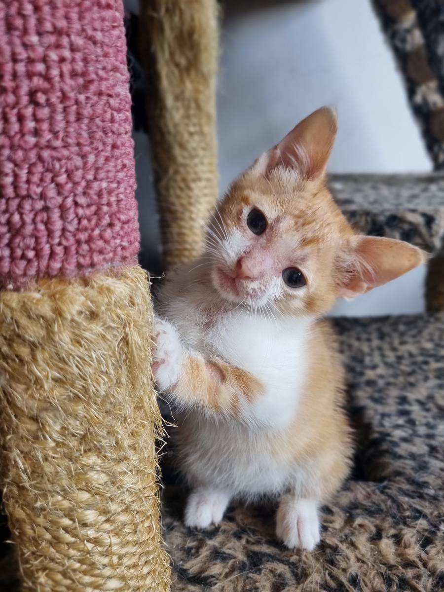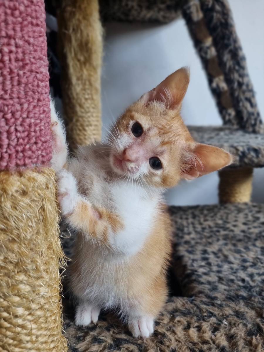 Luego de cuidarlo por un tiempo su pata ya sano y esta subiendo de peso. Lamentablemente salio positivo en VIF por lo tanto el solo puede convivir con otros gatos también positivos o con otros animales (perros, aves, etc). El VIF no afecta su calidad de vida ni a humanos.