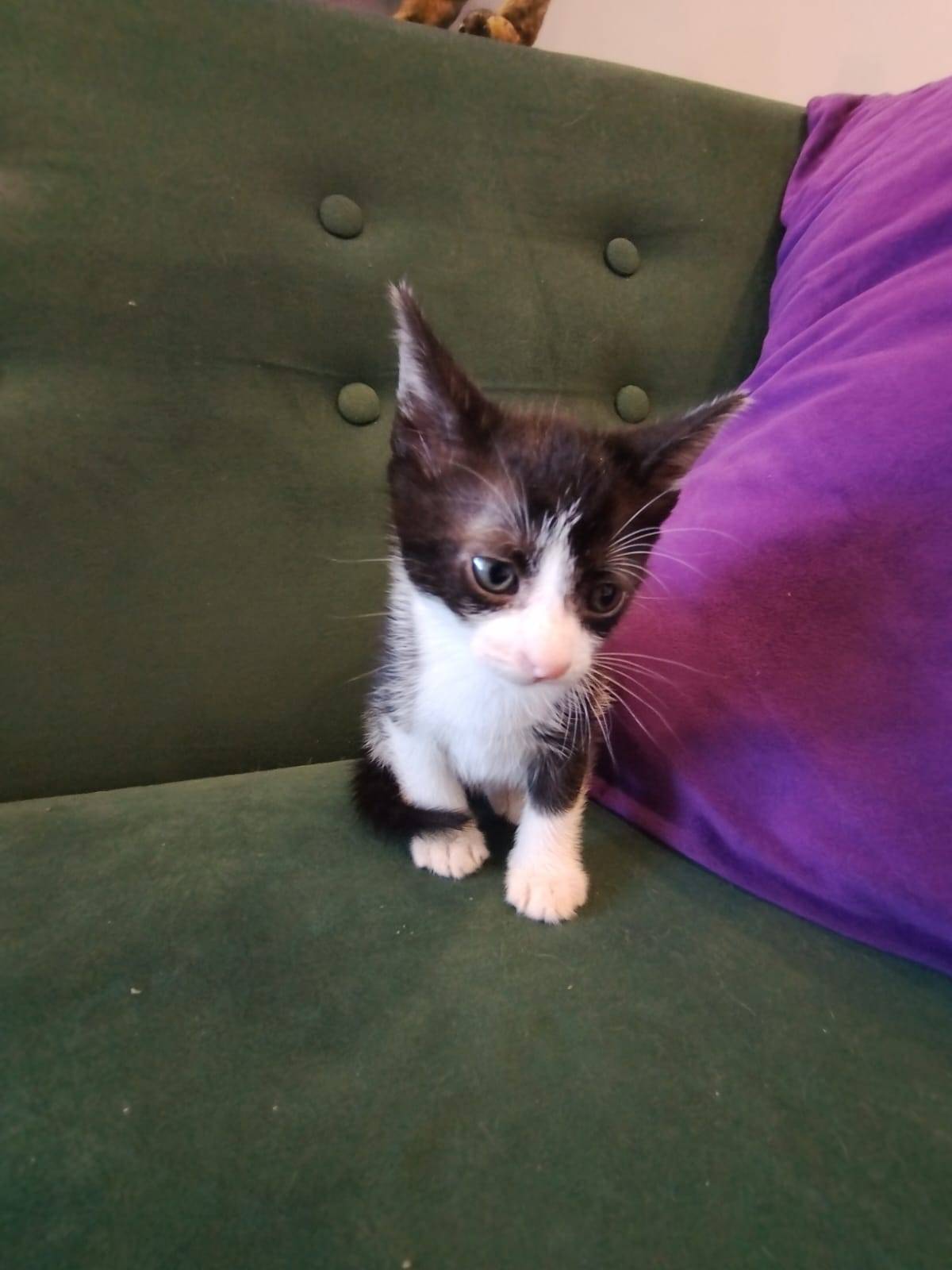 Se llama tornado tiene 7 meses,es macho,esta castrado lo encontré tirado en una caja cerca de las vías del tren y lo llevé a mi casa,pero mi casa es muy chica y lamentablemente no lo puedo tener.Es muy buen compañero,cariñoso y ama a los niños, también le gusta ver videos aunque aveces se aburre(más lo que tiene cosas visuales)